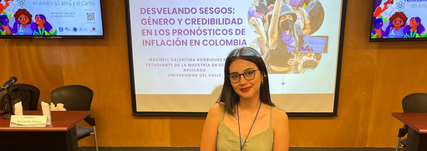 En esta oportunidad, las docentes presentaron las investigaciones: ‘Caminando por las calles de mi ciudad sin sentirme acosada, ¿Cuándo será posible?’ y ‘Road traffic accidents and the female labor market participation’, respectivamente. Por otra parte, Rachell presentó su ponencia titulada ‘Desvelando sesgos: Género y credibilidad en los pronósticos de inflación en Colombia’, la cual consiste en un experimento piloto diseñado para examinar cómo varía la percepción pública de las decisiones de política monetaria según el género y la etnia del emisor.
