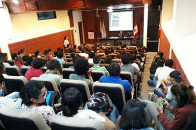 El evento que fue celebrado en el Auditorio Antonio J. Posada, edificio D12 (387), contó con una amplia asistencia tanto de estudiantes de la facultad como de otras unidades académicas. El profesor Thomas inició su presentación explicando que en Alemania la educación pública es gratuita o puede ser muy económica, además que no es necesario hablar alemán.