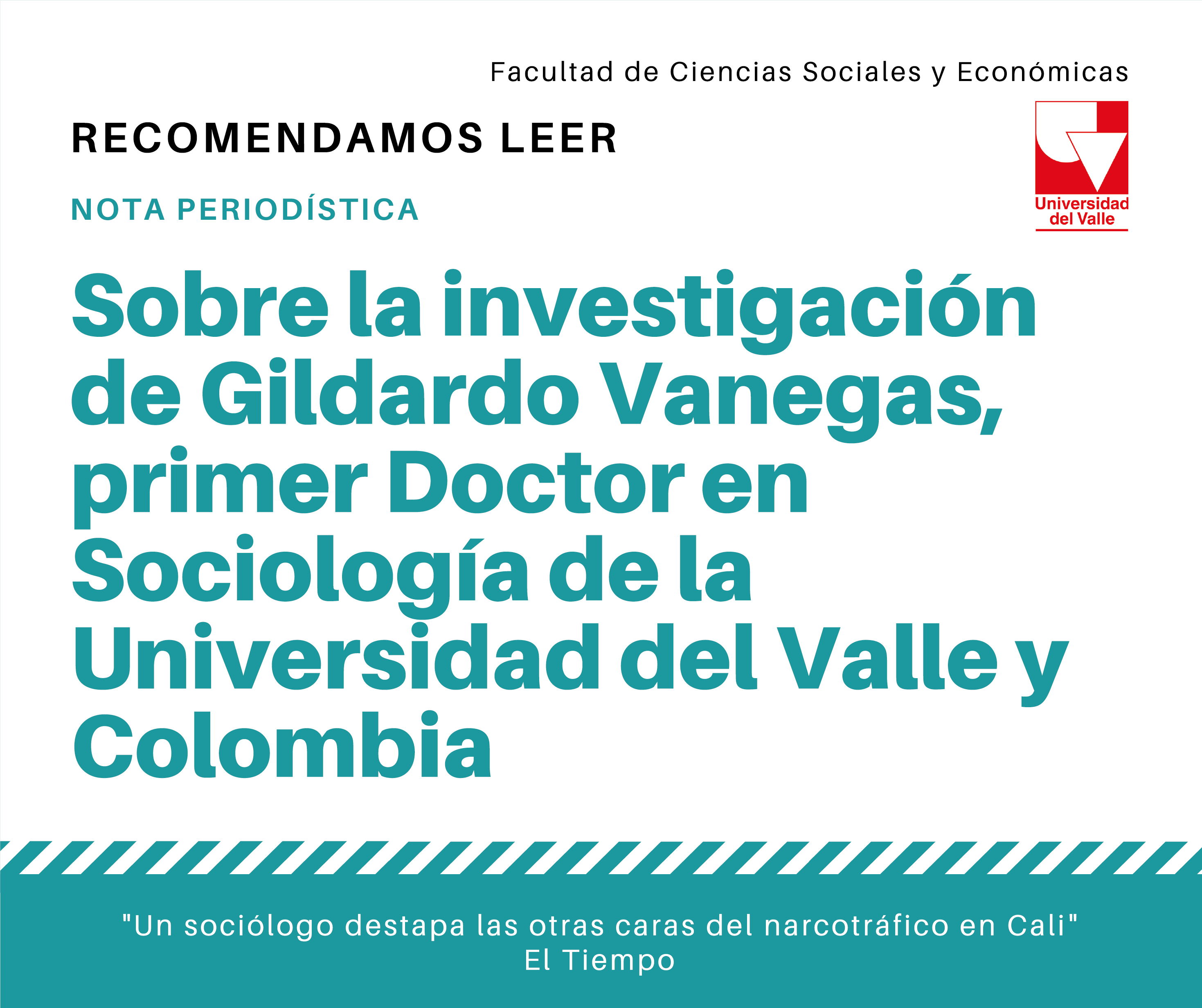 El pasado jueves 5 de agosto se publicó en el diario El Tiempo una nota titulada “Un sociólogo destapa las otras caras del narcotráfico en Cali”. En dicha publicación, José Luis Valencia, editor de El Tiempo Cali, describe el proceso de investigación y algunos de los resultados de la tesis de Gildardo Vanegas, egresado del Doctorado en Sociología de la Universidad del Valle.